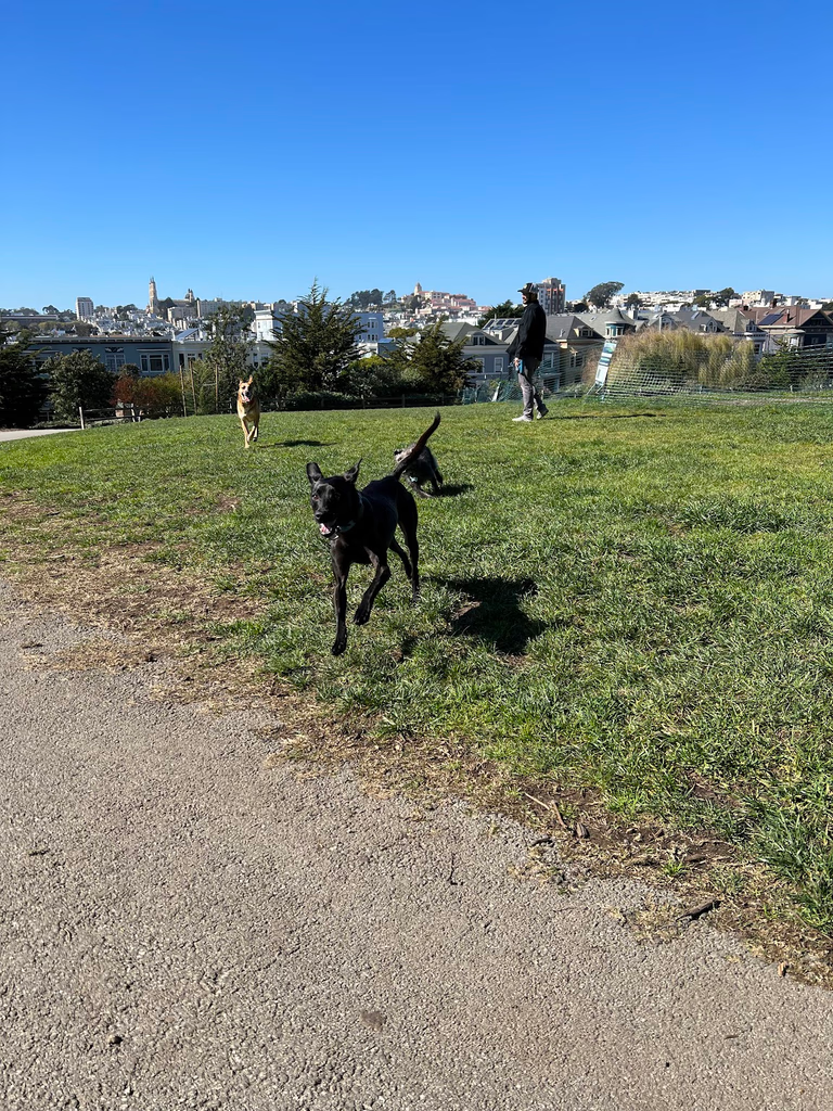 Lena walked Vina to Alamo Square Park where they were greeted by Izzy and her best friend, Frida and Frida’s human, Jamie. They gave Vina a clue and got to run around in the park. Noah originally thought about having Izzy join Vina for the rest of the scavenger hunt at this point, but ultimately knew that Izzy would have way more fun running around with her best friend.