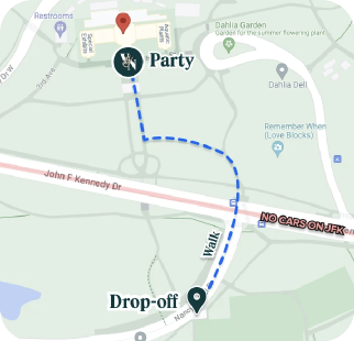 It's about a 5 minute walk north towards JFK Dr., then make a left. Walk towards the big white building, you can't miss it!